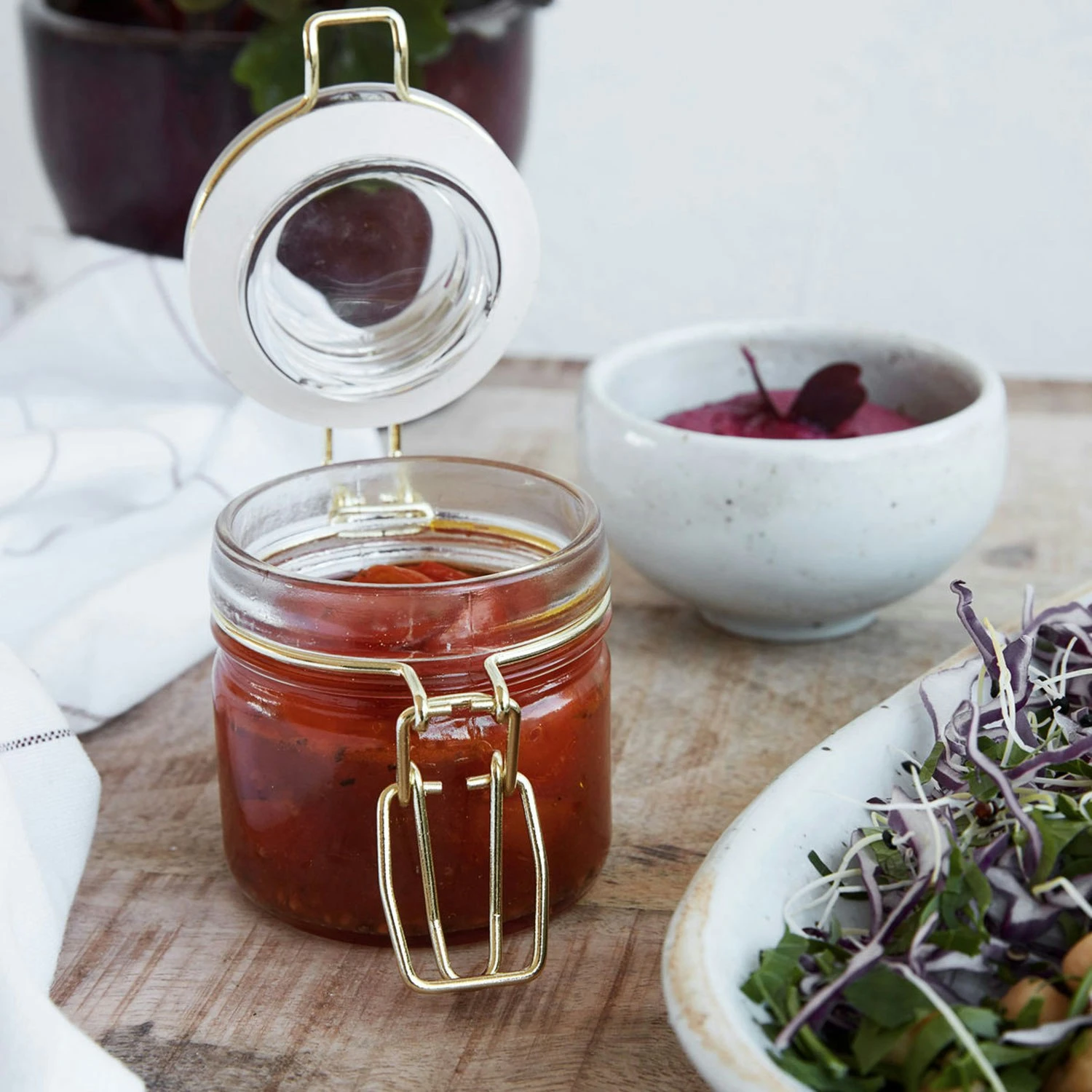 The transparent glass jar Vario from House Doctor makes it easy to keep track of amount and content. The lid is provided with silicone details and a neat sealing, which makes the jar a practical and elegant element in your kitchen. The jar can also be used as storage throughout the home, such as keeping gems and other small office supplies. Handwash only.